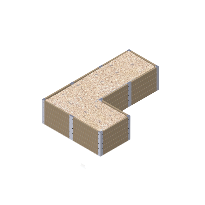 - Bacs en lames de pin douglas (classe 3 non traité) de 30mm d’épaisseur, pour une hauteur totale de 72cm.