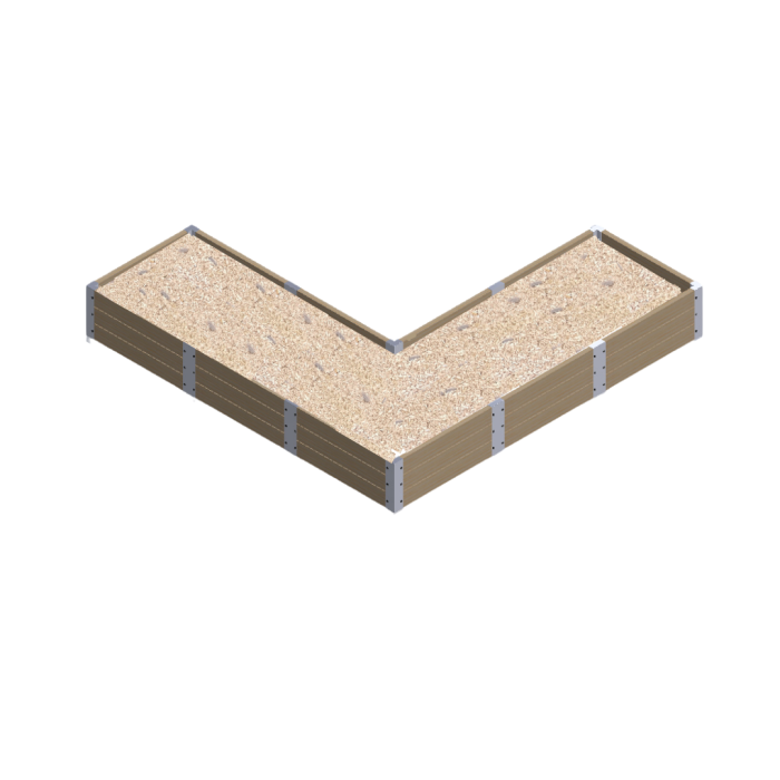 - Bacs en lames de pin douglas (classe 3 non traité) de 30mm d’épaisseur, pour une hauteur totale de 43cm.