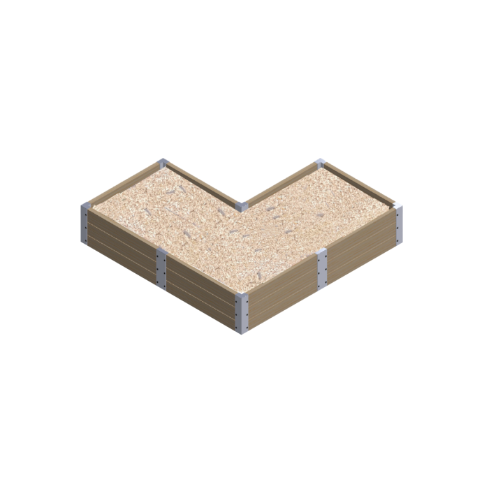 - Bacs en lames de pin douglas (classe 3 non traité) de 30mm d’épaisseur, pour une hauteur totale de 43cm.