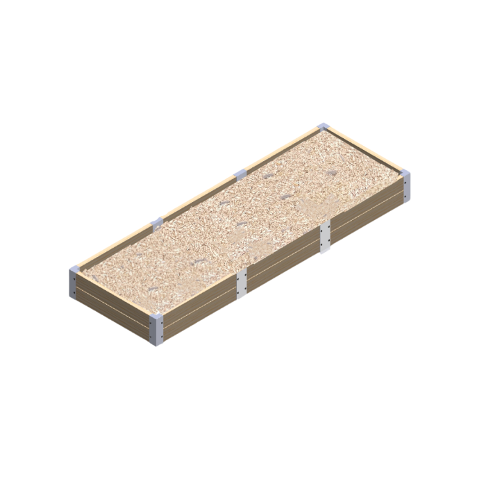 - Bacs en lames de pin douglas (classe 3 non traité) de 30mm d’épaisseur, pour une hauteur totale de 29cm.